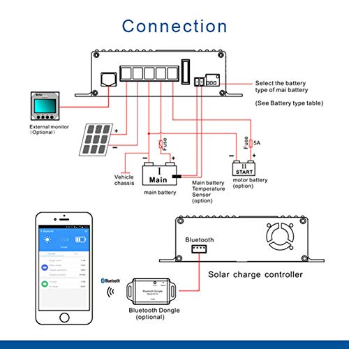 Rvest - Regolatore di carica solare, regolatore di carica solare MPPT Solare, Bluetooth pannello solare, regolatore di carica solare Dual Battery Charging