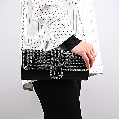 R RWALKING - Borsa da donna con strass, con catena diagonale per la festa della sera, per banchetti, borsa a mano