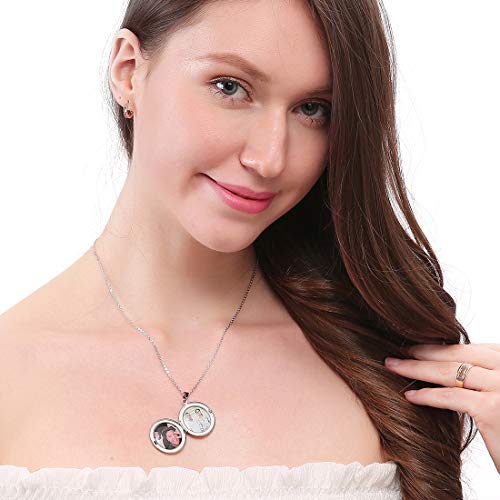 RWQIAN Collana di Foto Personalizzata per Le Donne Ragazze Coppia in Acciaio Inossidabile Tondo Argento Locket Portafoto Pendente Incisione Testo Collane Gioielli