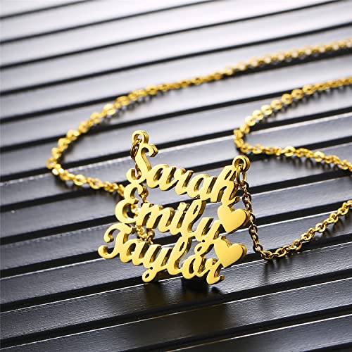 RWQIAN Collana con Nome Personalizzato Nome Pendente 3 nome 14-22" d'argento/oro/Oro rosa
