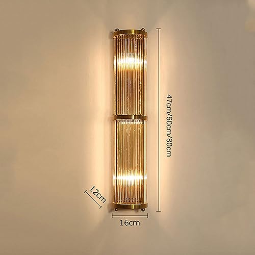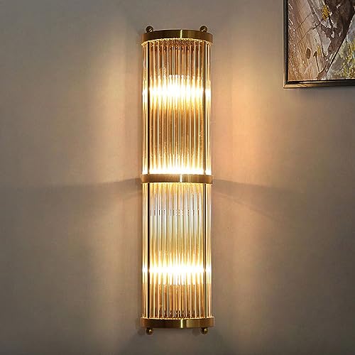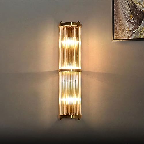 RXPVUXE Applique da parete in cristallo mezzo cilindro Lampada da bagno moderna in oro Lampada da parete a tubo lungo metà secolo, Apparecchio di illuminazione da parete in acciaio inossidabile E14 pe
