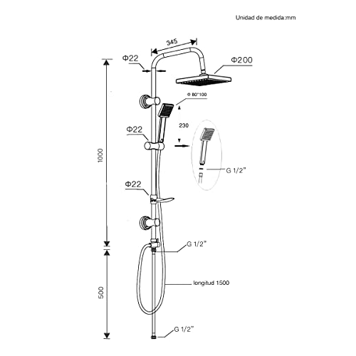 DP Bath - RY-S002 Set Doccia Quadrato, Acciaio Inossidabile, Argento