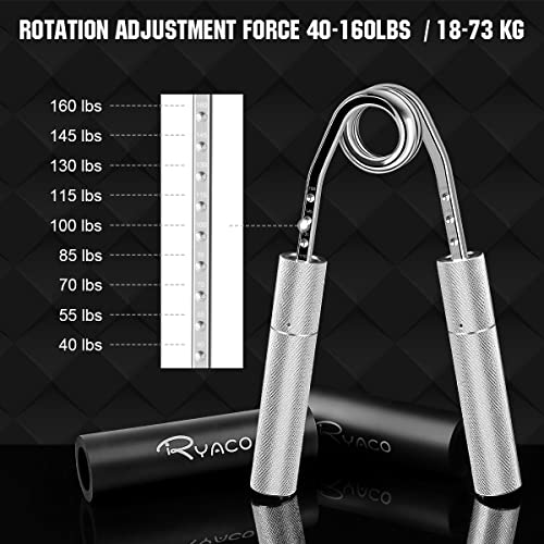 Ryaco Hand Grip, 18-73KG (40-160lbs) Regolabile Gripper Pinza Polso Avambraccio Trainer, Alluminio Finger Manubri Grip, Molla Avambraccio Hand Press per la Costruzione Muscolare