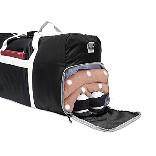 Facile da Piegarsi e Sbloccare: questa borsa da viaggio da 82L può essere ripiegata bene in una super-piccola taglia (9,25 "x 12,20"). Questo "aeroporto saver" può essere impiegato in aeroporto per evitare sovraccarico di bagaglio.