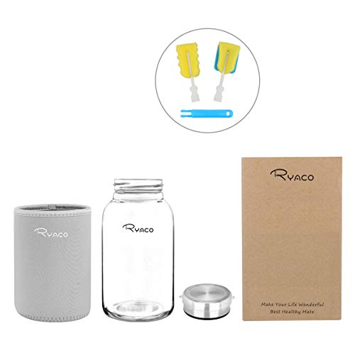 Capacità di 800 ml: la più grande capacità della bottiglia d'acqua in vetro Ryaco. Non dovrai acquistare una bottiglia d'acqua usa e getta. Questa è la soluzione più ecologica ed economica.