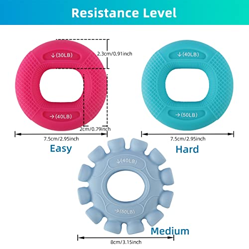 Ryaco 2 in 1 Rinforzo per Mano, 3 Pezzi Attrezzo Ginnico per avambracci e Dita, Anello di Rafforzamento Muscolare per Silicone, Set Allenamento Avambraccio per Allenamento Arrampicata Riabilitazione