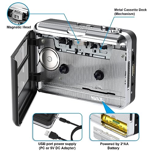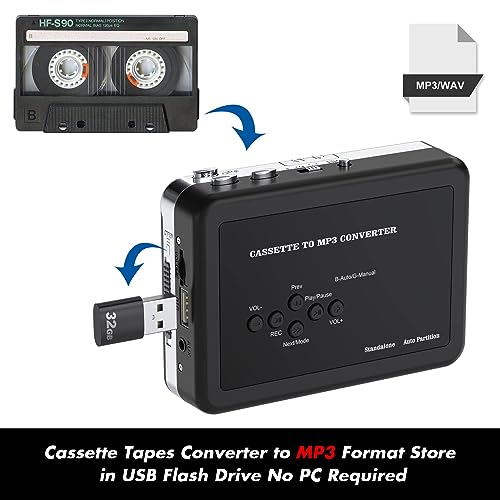 Cassette Tape to MP3 Converter, Plug and Play, con Auto-Reverse