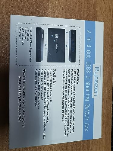 Rybozen USB Switch,KVM Switch usb 3.0 per 2 PC 2 in 4 out, Commutatore USB 2 Ingressi 4 Uscite per Mouse, Tastiera, Scanner, Stampante, Hard Drive,2 Cavi USB 3.0 da 1,5M in Dotazione