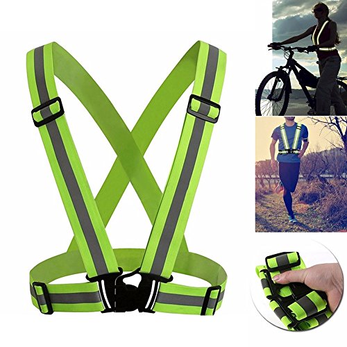 Rycnet - Gilet catarifrangente elastico e regolabile, con bretelle di sicurezza catarifrangenti per la notte, la corsa, il jogging, il ciclismo, lo sport, Verde fluorescente