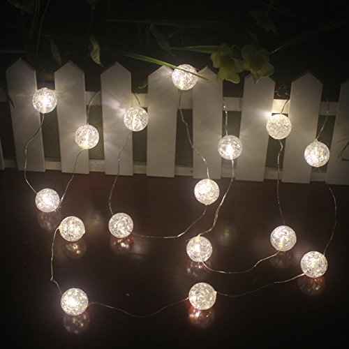 Ryham Batteria Operated sfera di cristallo luci della stringa 16 7.38ft 2,25M LED Fata Globe bolla decorazione di illuminazione per le decorazioni dell'interno esterna Patio Party cortina Camera di Natale stagionali, Bianco Caldo