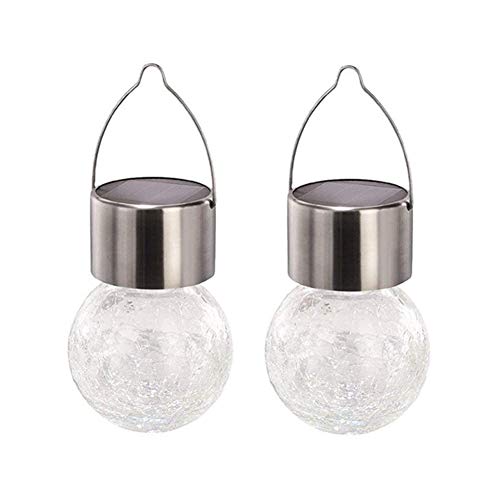 Ryham luce solare del giardino,luci solari esterne Crackle Glass Globe lanterna appesa gancio per Outdoor/percorso/Scale/cortile/terrazza/giardino/parco,Cambiare colore,2pack