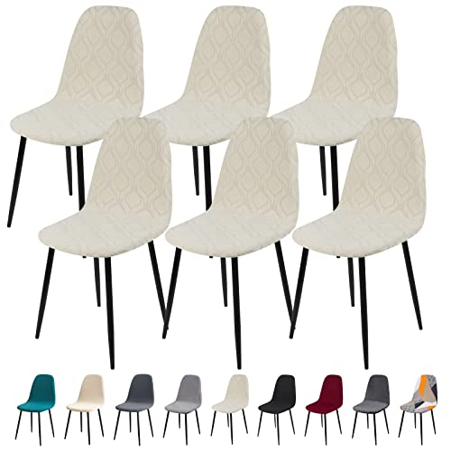Ryoizen Coprisedia da Sala da Pranzo Elasticizzato,6 Pezzi Jacquard Fodere per Sedia Scandinava Antiscivolo Lavabile Moderne Copertura della Sedia Senza Braccia per Cucina Riunioni Soggiorno,Beige