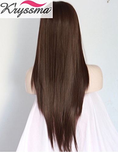 K' Ryssma Natural looking Long marrone dritto parrucche per le donne realistico morbido Hair synthetic Lace Front WIG Half Hand Tied Heat Resistant Fiber di alta qualità UK 55,9 cm
