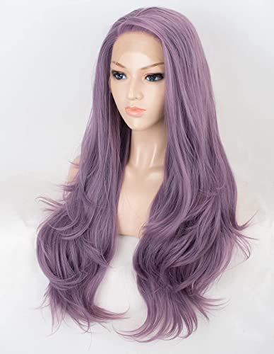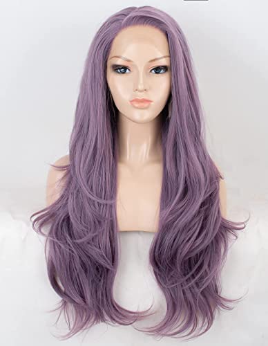 K'ryssma Parrucca anteriore in pizzo viola da 13x2,5 pollici per donne parrucche sintetiche ondulate lunghe senza colla resistenti al calore 22"