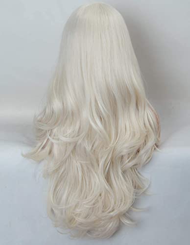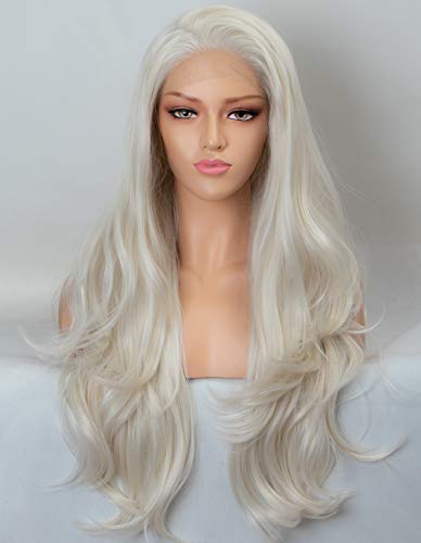 K'ryssma Parrucca Realistic Wigs for Ladies White #60 Natural Wavy Lace Front Wig Synthetic Hair Heat Resistant Fiber Half Hand Tied 24 inches