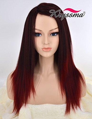 K' Ryssma spalla lunghezza ombre Yaki parrucche per le donne nero ombre parrucca rossa con parte laterale dall' aspetto naturale capelli sintetici misti colore 1B a 99J 45,7 cm