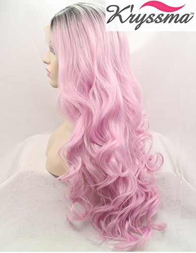 K' Ryssma Sweet ombre parrucche rosa chiaro per ragazze Dark Roots Long Wavy synthetic Hair cute Light Pink Lace Front WIG for Halloween 55,9 cm