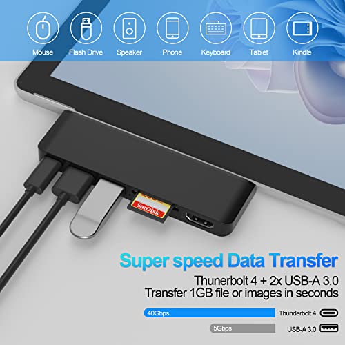 Rytaki US Surface Pro X Hub Docking Station, accessori 6-in-2 per Microsoft Surface Pro X con HDMI 4K + porta audio e trasferimento dati USB C + 2 USB 3.0 + lettore di schede SD/TF