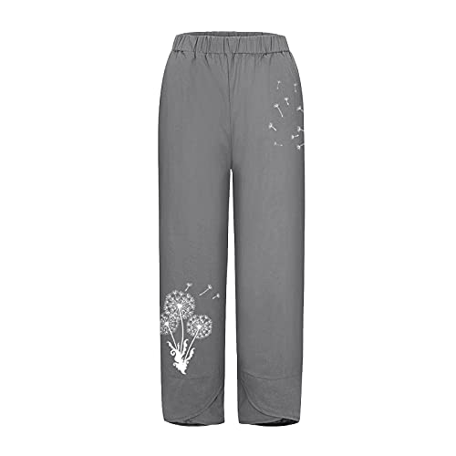 RYTEJFES Pantaloni estivi da donna a 7/8, con stampa leggera, pantaloni lunghi, da spiaggia, casual, comodi, gamba larga, taglio elastico in vita con tasche, grigio., XXL