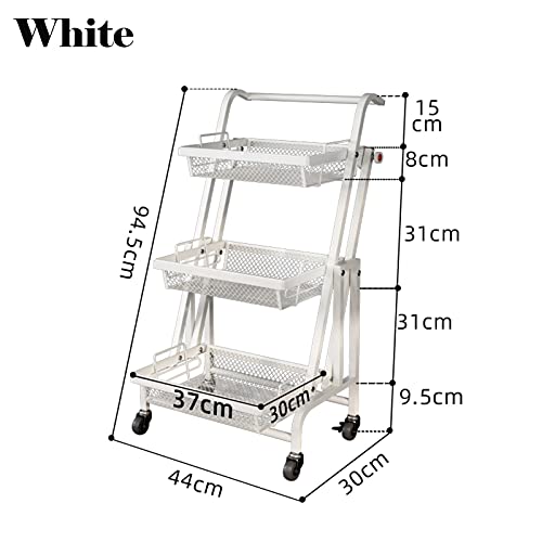 RYUNQ Carrello Portaoggetti Carrelli a 3 Ripiani, Carrello di Servizio Mobile Angolo Regolabile, Cesti da Cucina con Ruote da Portata, Adatto a Cucina, Bagno, Ufficio, Bianco