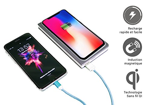RICARICA E RICARICA VELOCI: wireless in standard IQ. I carica batterie e ricarica fino a 2 volte più veloce rispetto alle batterie tradizionali esterni con il chip QC2.0 + 1 uscita USB Qualcomm (carica veloce) e un'uscita USB 2A