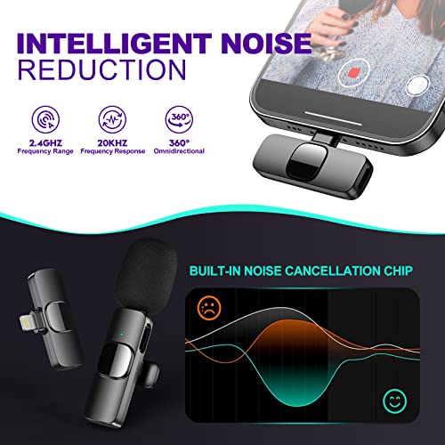 ➤【Distanza di trasmissione fino a 20M】Microfono Piccolo per Telefono presenta il più recente chipset JL, il microfono per smartphone wireless da 2,4 Ghz fornisce una trasmissione stabile, fluida e anti-interferenza fino a 20 m ( LOS). Lightning Mic con una semplice clip sul collo e registrazione di trasmissioni in diretta, vlogging o interviste.