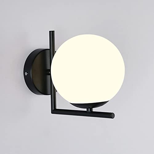 S-Cevada Applique da Parete a Sfera in Vetro Bianco, Lampada da Parete a Globo a LED Moderna Semplice per Interni Portico Corridoio Camera da letto (Nero)