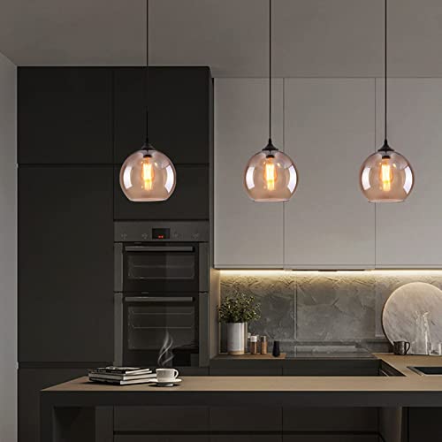 S-Cevada Lampadario a Sospensione a Sfera di Vetro Semplice, Lampada a Sospensione a Soffitto Vntage Industriale E27 a Globo a 1-Luce per Cucina Sala da pranzo (Ambra)