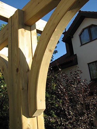 S-line - Pergola addossata in legno per terrazzi con copertura a forma curvata. Dimensioni: h 305 x 525 x 410cm