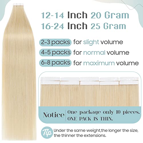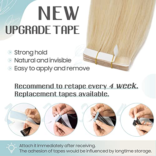 S-noilite Capelli Veri Extension Biadesivo 10 fasce - 20g Lisci Tape in Hair Extensions Real Remy Capelli Extension 30cm #613 biondo sbiancato