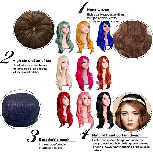 S-noilite ® 58,4 cm Cosplay anime parrucca strato lunghi ondulati parrucche piene Linen Blonde party Fancy Dress Halloween