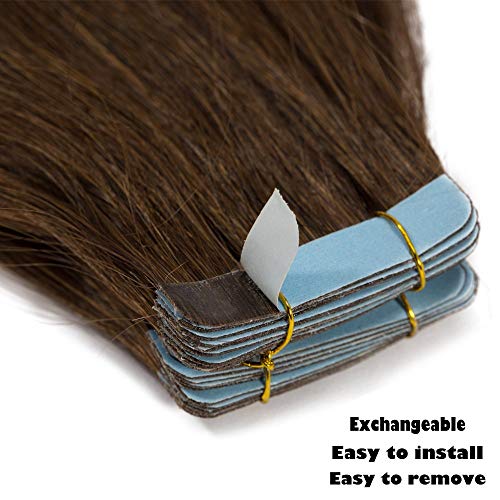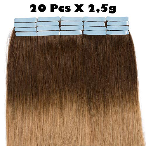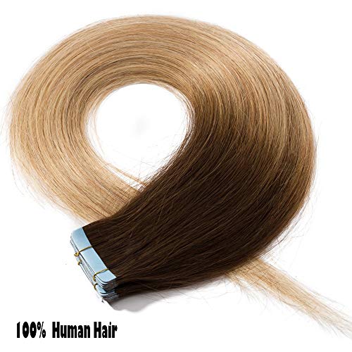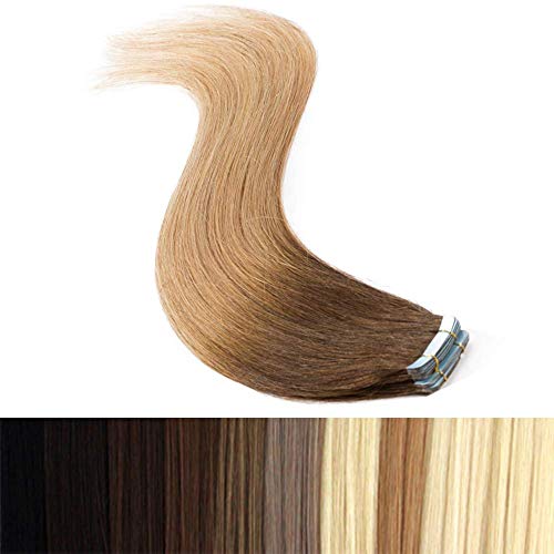 S-noilite Extension Capelli Veri Biadesivo Riutilizzabili Tape in 4T27# Marrone Cioccolato/Biondo Scuro 35 cm(40 g) 20 Fasce 2g/pcs 100% Remy Human Hair Umani Lisci Naturali Invisibile Seamless