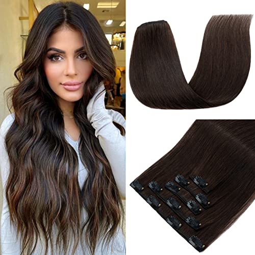 S-noilite Extension Capelli Veri Clip Capellomano,5 Pezzi 12 Clip Remy Hair Extension-Capelli Veri Lisci Umani Extension Con Clip Naturali Extension Capelli Veri(#2 Marrone Scuro,45cm-70g)