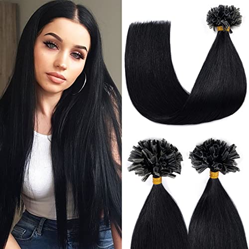 S-noilite Extension Capelli Veri Cheratina,100 Ciocche 50g Pre Bonded U Tip Nail Hair Allungamento 100% Remy Human Hair (50cm(50g), 01 Jet Nero)
