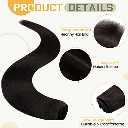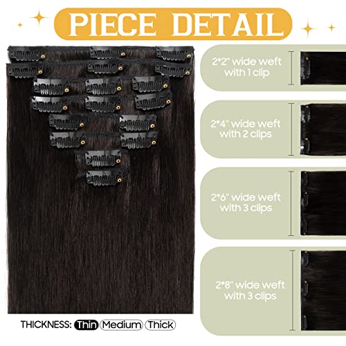 S-noilite Extension Capelli Veri Clip,8 Pezzi 18 Clip Remy Umani Extension-Capelli Veri Lisci Umani Extension Con Clip Naturali Extension Capelli Veri (40cm-65g, 1B Nero Naturale)