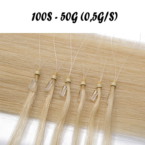 S-noilite Extension Microring Capelli Veri 40 cm (50 g) 60# Biondo Platino Nano Ring Colorati Remy Human Hair con Filo Tessitura Naturale 0.5g/Ciocche 100 Ciocche
