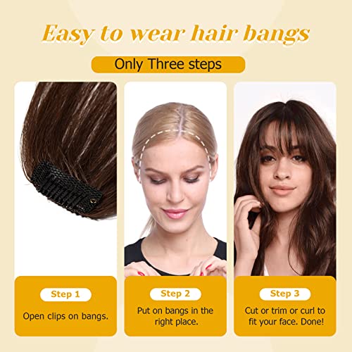 S-noilite Frangia Clip Capelli Veri Frangetta Extension,100% Remy Human Hair Air Bang Frangetta con Tempie Capelli Naturali con Clip - #04 Marrone Cioccolato