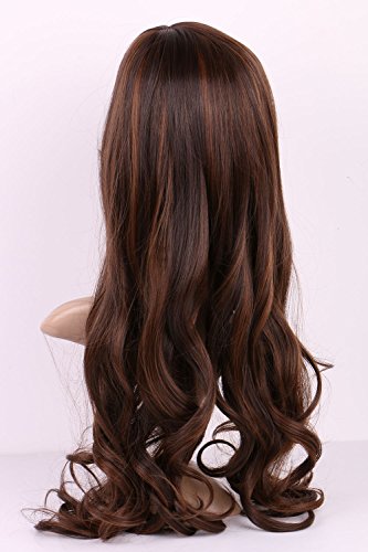 S-noilite - Parrucca sintetica lunga 52 cm, ondulata e riccia, colore marrone con ombre, colore marrone
