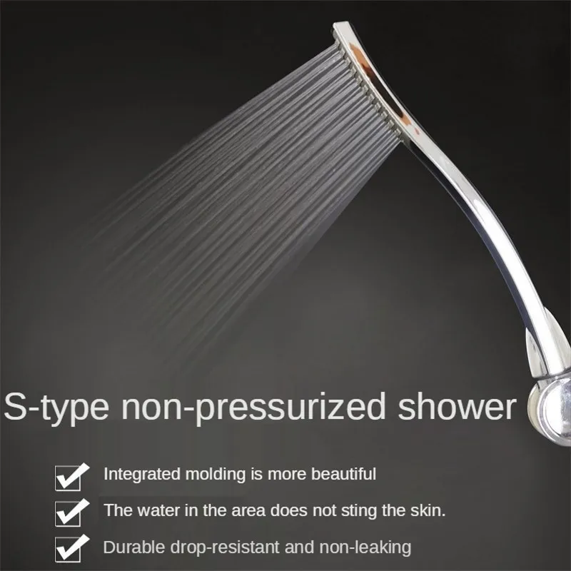 S-Shaped Rectangle Rain Shower Head Bathroom Not Pressurized WaterOut Gentle Handheld Electroplating Fall Resistant Spray Nozzle