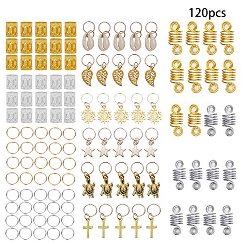 S-TROUBLE 120Pcs Anelli a Treccia per Capelli Polsini in Metallo Dreadlocks Perline Foglie di Conchiglia Stella Croce Decorazioni Tartaruga Pendenti Charms Accessori