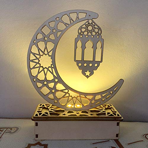 S-TROUBLE 2020 New Eid Mubarak Ramadan Fai da Te LED in Legno Decorativo Luce Luna Moschea Stella Islam Ciondolo Appeso Home Room Decorazioni per la tavola
