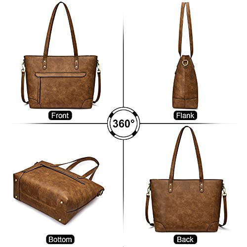 S-ZONE Borsa a tracolla in pelle per donna grande borsa a tracolla per lavoro con tracolla lunga, Marrone chiaro, Large, Moda Moderna, Borsa a tracolla in pelle da donna