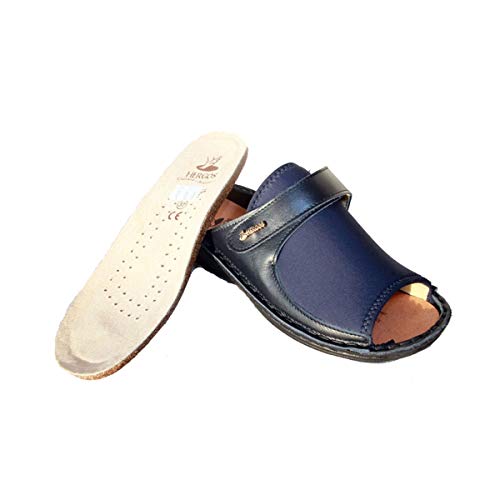 Sabatini Calzature Hergos H 150 Blu Setaelast - Ciabatta Comoda per Alluce valgo - Vera Pelle - 35, Blu, Primavera/Estate
