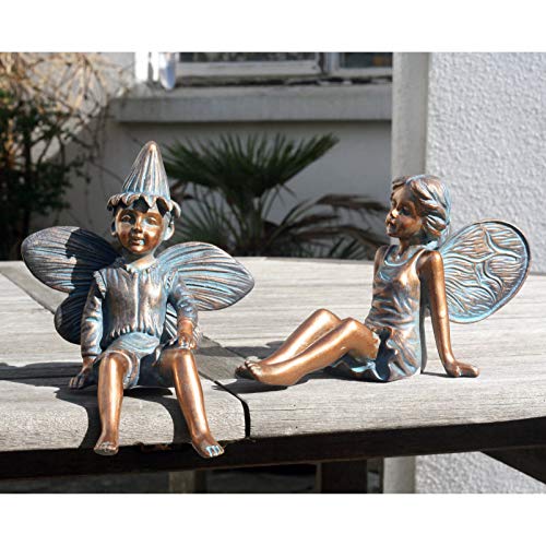Fata di Sabbia, Effetto Bronzo, Ornamento da Giardino, Gnome, Fata del Giardino, Troll, Imp ...