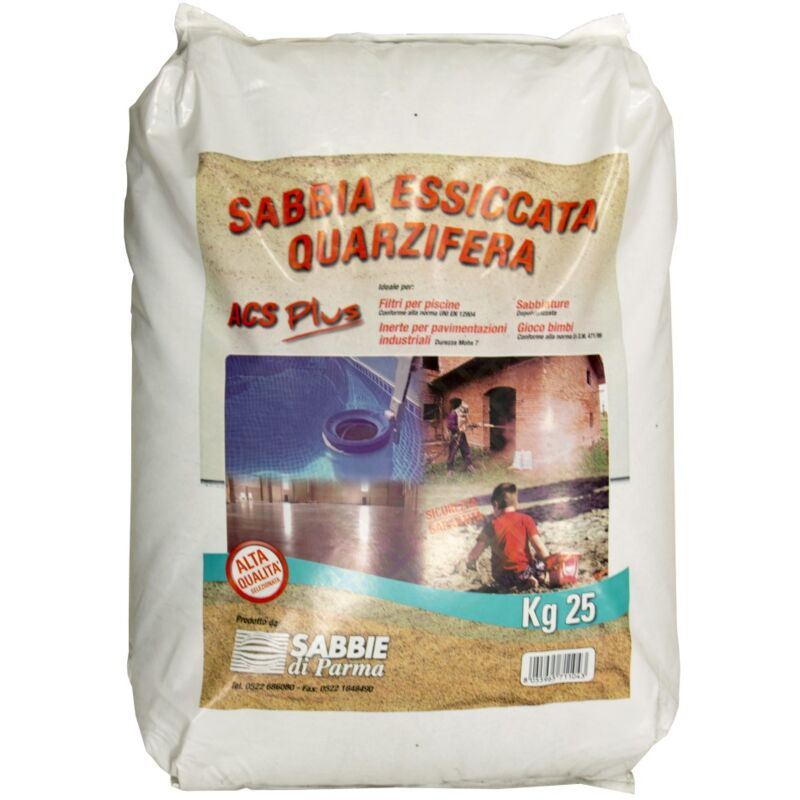 Per sabbiatrici. Indicata per la formazione di pavimentazioni industriali ma anche per pompe a sabbia di piscine (conforme alla norma UNI EN 12904), gioco bimbi (conforme alla norma Ex D.M. 471/99), sabbiature. Tramite un' accurata lavorazione, subisce processi di lavatura, ciclonatura, essiccazione, deferrizzazione e selezionatura. Granulometria 0,4-1,0 mm. In sacco.. Prezzo inteso per: 1 CF