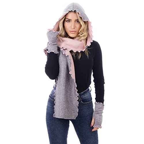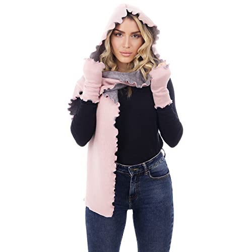 S DAL 1982 SARA SABELLA ISOLA D'ISCHIA Set Invernale da Donna, Sciarpa con Cappuccio & Guanti Senza Dita, Misto Viscosa, 2 Pezzi (rosa_grigio)