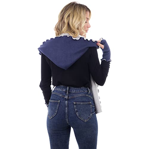S DAL 1982 SARA SABELLA ISOLA D'ISCHIA Set Invernale da Donna, Sciarpa con Cappuccio & Guanti Senza Dita, Misto Viscosa, 2 Pezzi (grigio_blu)