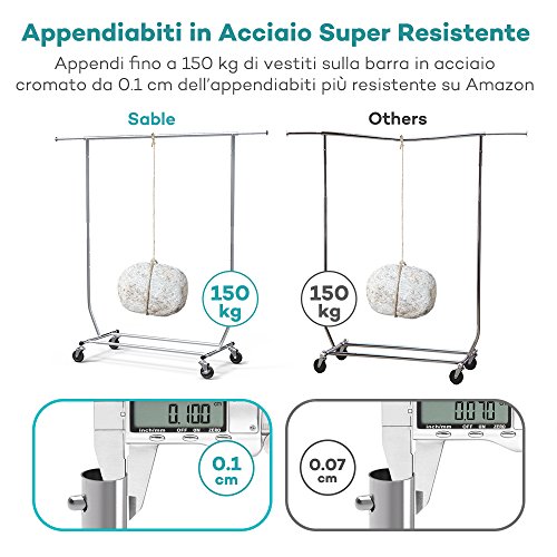 Appendiabiti in Acciaio Super Resistente: Appendi fino a 150 kg di vestiti sulla barra in acciaio cromato spessa 0.9 mm dell'appendiabiti più resistente su Amazon per avere un guardaroba ordinato e organizzato