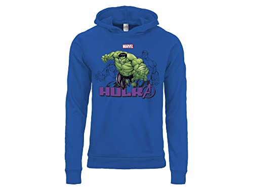 Sabor srl Felpa con Cappuccio Ufficiale Hulk. Modello Logo Viola. Stampa frontale. Prodotto ufficiale. Unisex. Blu. Taglie da Bambino. (5-6 anni)
