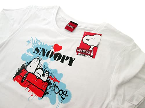 Sabor srl T Shirt Snoopy Fumetto Cartone Peanuts. Modello da Donna con Stampa Frontale. Maniche Corte. 100% Cotone. Bianca. Taglie da Donna Ragazza. (M)